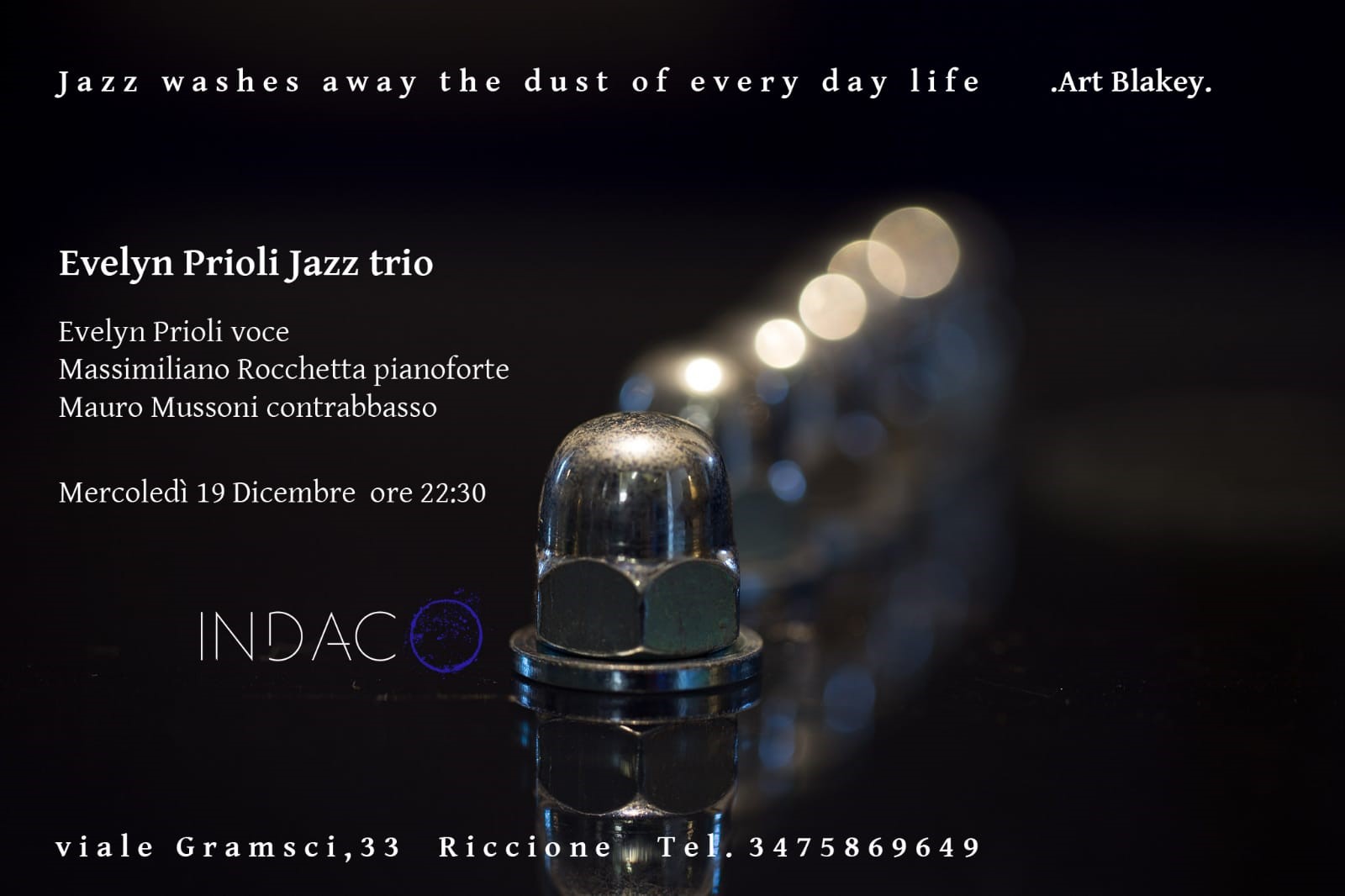 Mercoledì 19 dicembre, presso il locale Indaco di Riccione, appuntamento con Evelyn Prioli Jazz trio e la musica jazz.