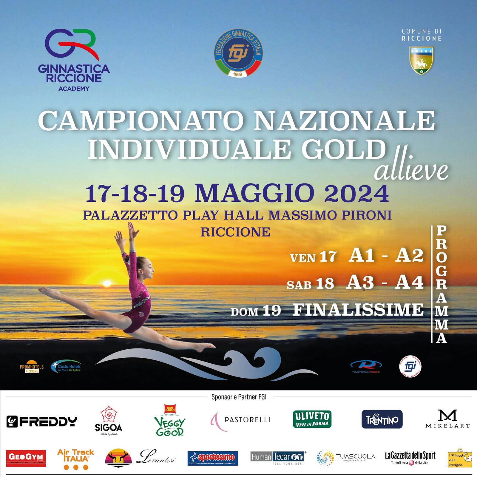 Dal 17 al 19 maggio il Playhall (viale Carpi 24) ospita le Finali nazionali allieve Gold di ginnastica artistica organizzate dall’associazione sportiva Ginnastica Riccione in collaborazione con la Federazione Ginnastica d’Italia e il Comitato Emilia-Romagna di riferimento, che vedrà impegnate le atlete di età compresa tra gli 8 e i 12 anni più forti d’Italia nel massimo livello della disciplina per aggiudicarsi il titolo di Campionesse italiane Gold.