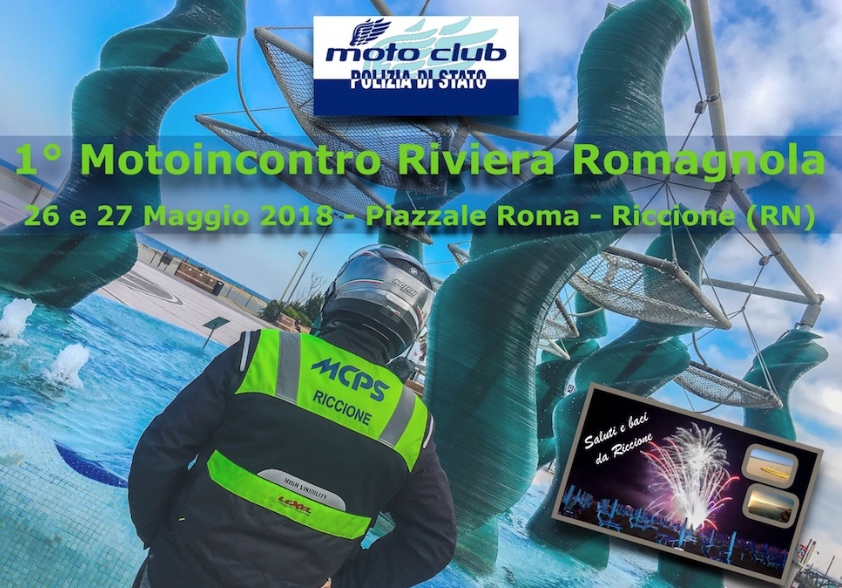 Sabato 26 e domenica 27 maggio, I° Motoincontro Riviera Romagnola, organizzato dal Moto Club Polizia di Stato, in piazzale Roma. L'evento è aperto a tutti i motociclisti che si sono iscritti alla segreteria organizzativa del Moto Club Polizia di Stato.