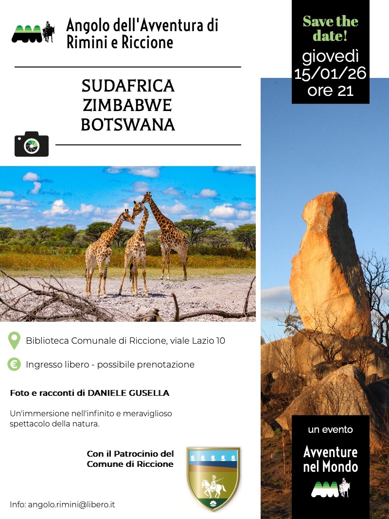 15 gennaio 2026 - Sudafrica, Zimbabwe, Botswana, con Daniele Gusella - scarica la locandina