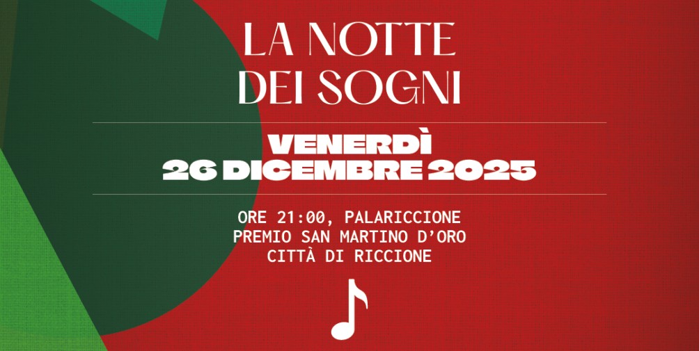 Il ricco palinsesto degli eventi presenta, venerdì 26 dicembre, uno degli appuntamenti in musica più attesi e graditi di fine anno: a partire dalle 21 la Notte dei sogni al Palazzo dei Congressi con il tradizionale Concerto di Santo Stefano e la cerimonia di consegna del San Martino d’Oro Città di Riccione, riconoscimento istituito dall’Amministrazione comunale per premiare coloro che si sono distinti in vari campi e hanno contribuito a diffondere il nome di Riccione nel mondo.