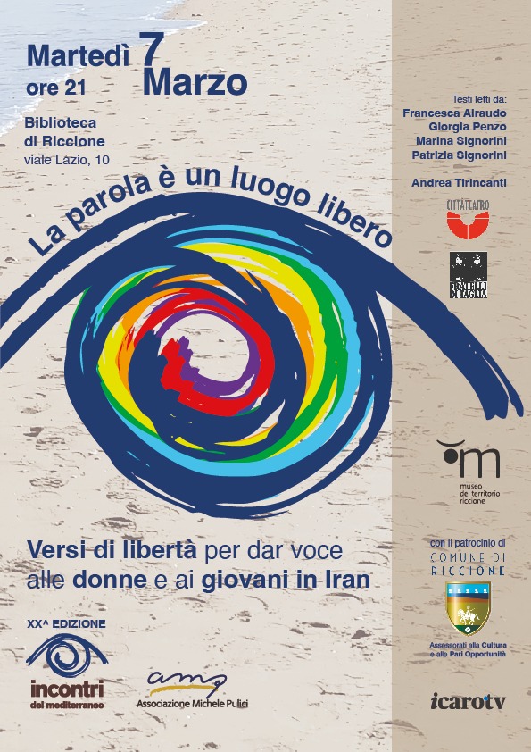 Martedì 7 marzo (ore 21:00), in occasione della Giornata internazionale dei diritti della donna che ricorre il giorno successivo, l’Associazione culturale Michele Pulici invita alla serata dal titolo La parola è un luogo libero. Versi di libertà per dar voce alle donne e ai giovani in Iran, in programma presso la sala conferenze del Centro della Pesa (viale Lazio 10).