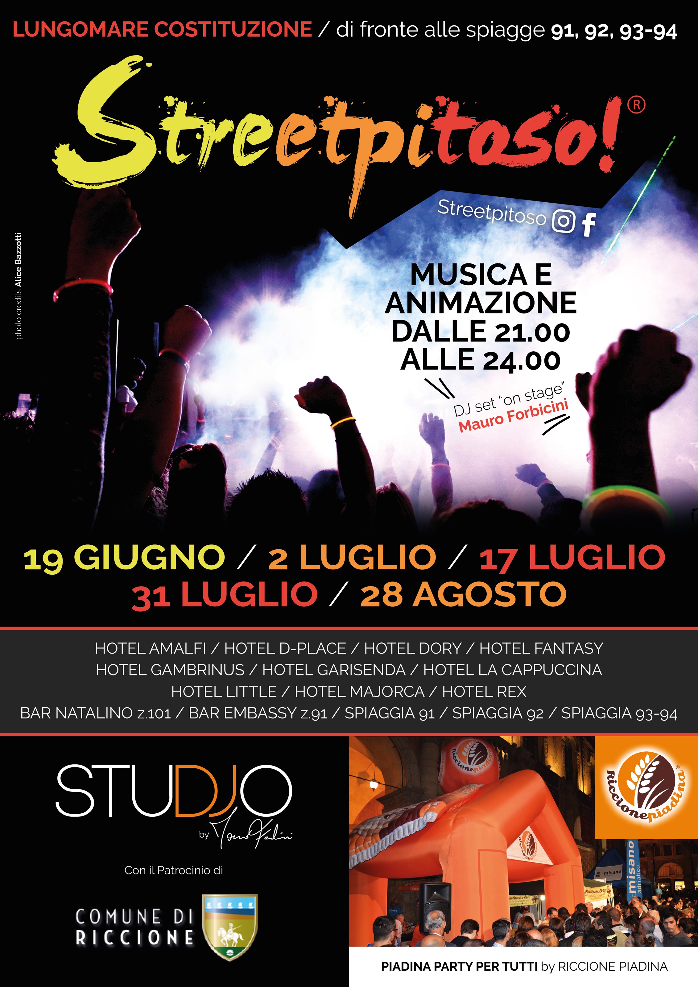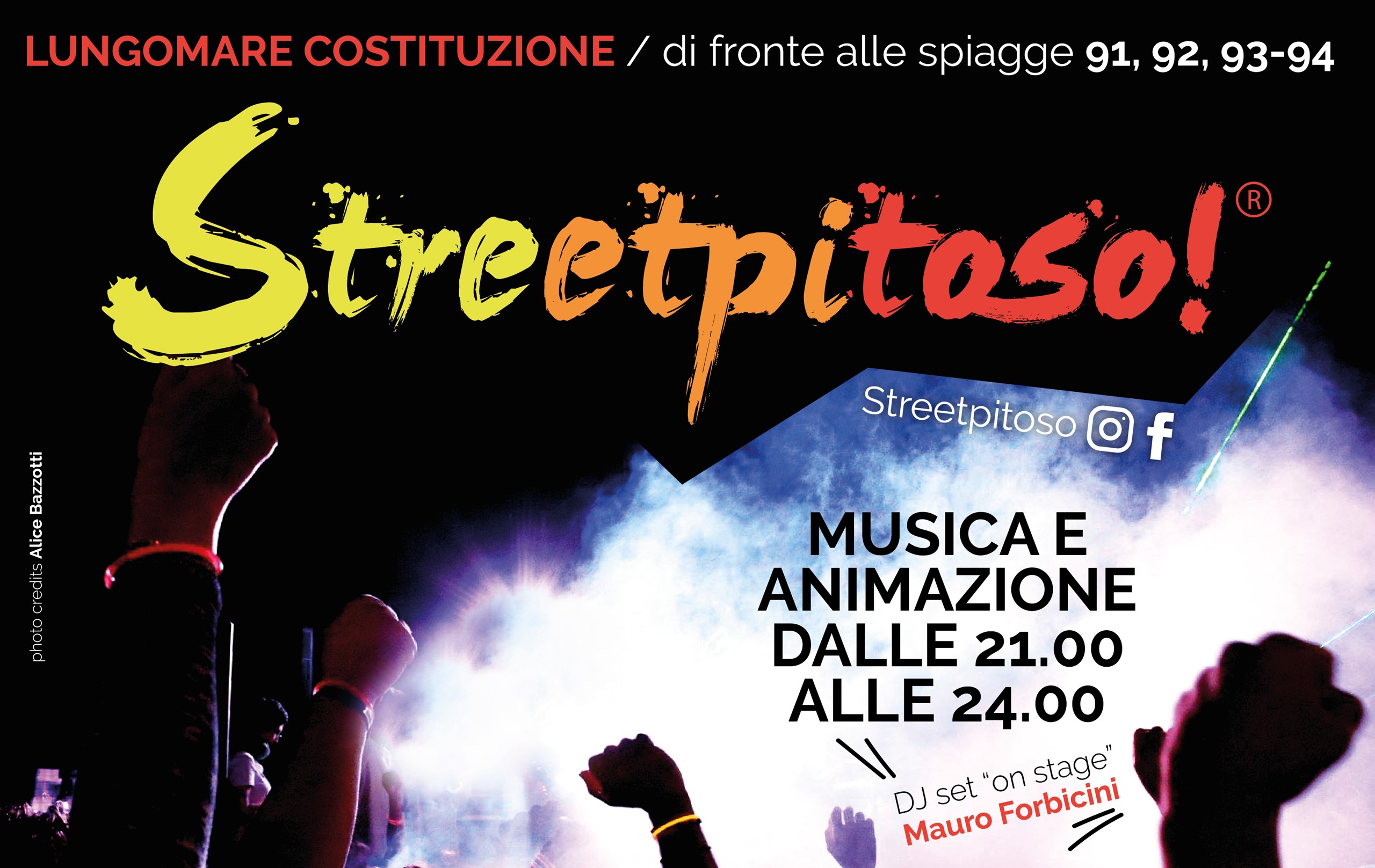 Dopo il successo dello scorso anno riparte il 19 giugno l'appuntamento sul Lungomare della Costituzione, all'altezza della Spiaggia 91-92-93-94, con il programma frizzante e divertente di Streetpitoso capitanato da DJ Maurino.